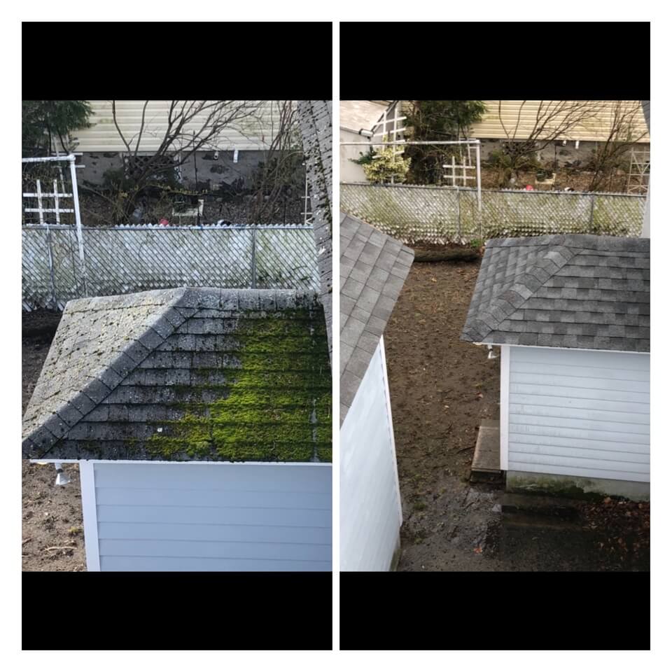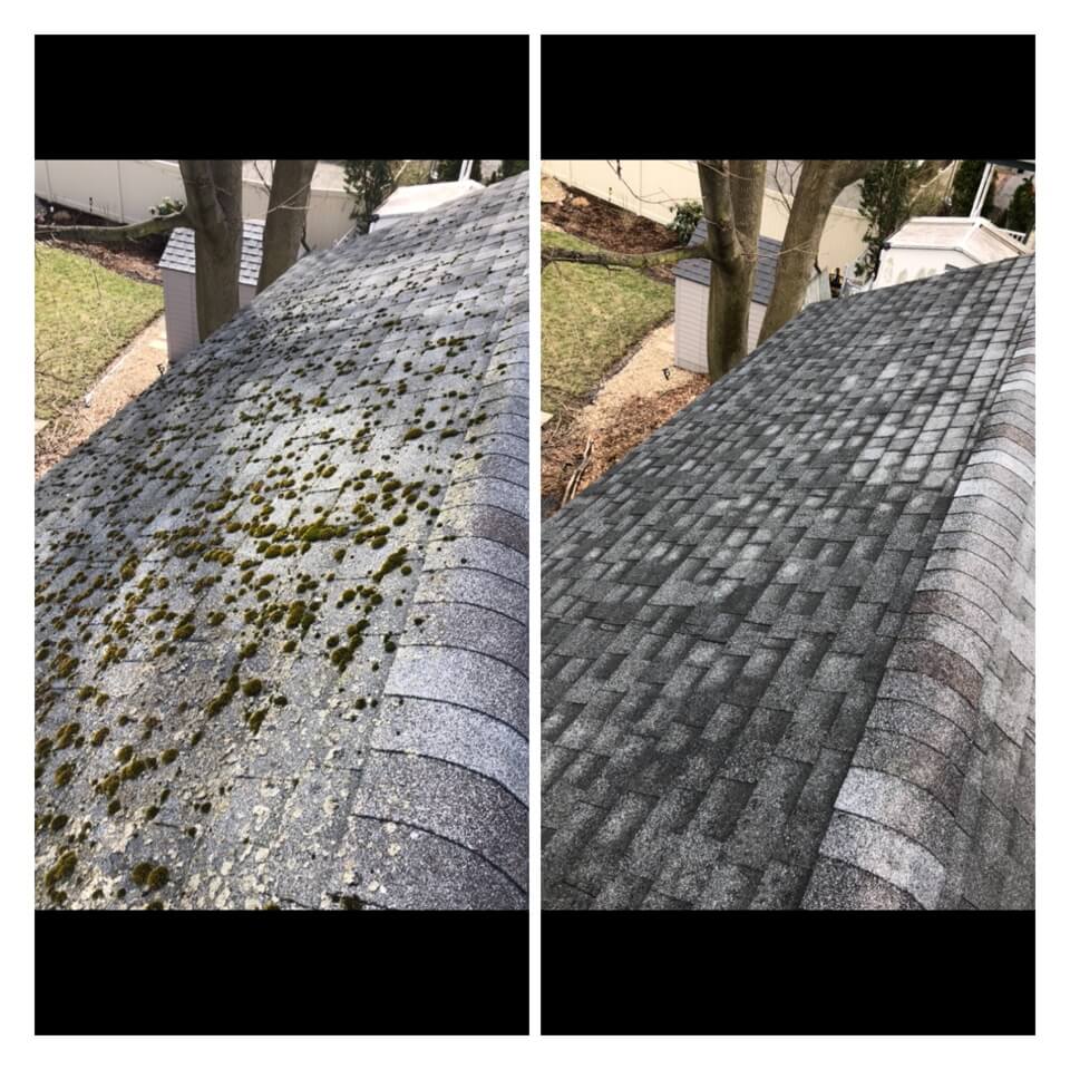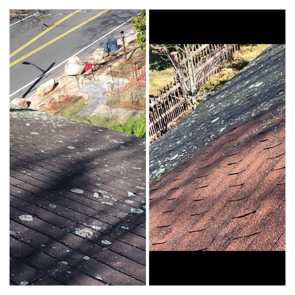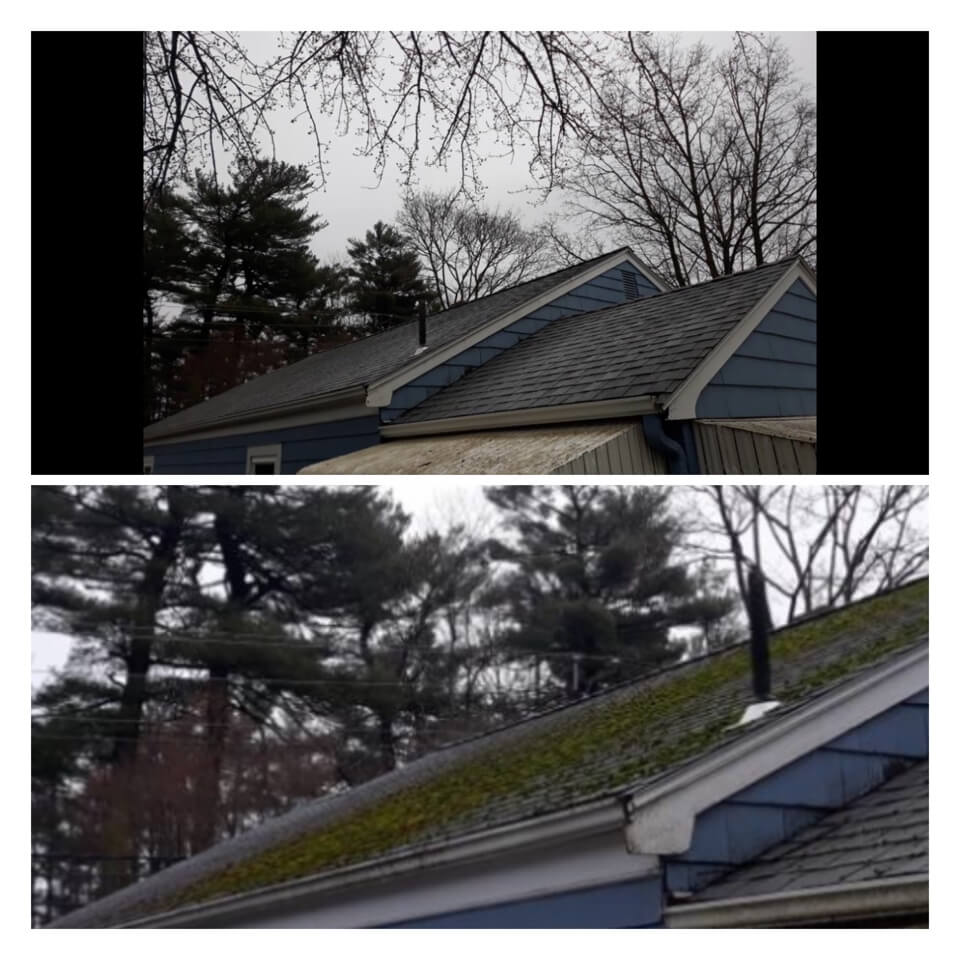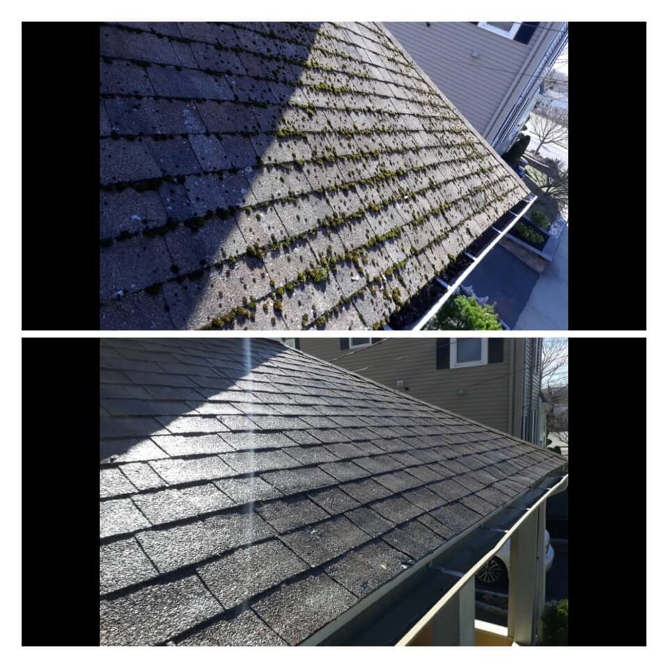 HiCleaners is the most experienced company in Allston, MA that deals with roof washing and roof soft washing. All of our employees are trained to recognize precise solution mixing ratios to provide you with the safest and most effective soft washing service. Roofs are a commonly neglected part of a house due to the fact that most people don’t have ladders to access it, so it is very easy to just leave it alone and forget about problems that may start to arise. Just like many home owners, discoloration and small bits of moss on a roof can be overlooked because of the misconception that it is just aesthetic. However, it isn’t just aesthetic, the moss slowly lifts the granules off the shingles which in turn shorten the life of the shingle. The moss also spreads, just like any bacteria if it is left alone for too long, it can quickly become a problem that spirals out of control. Call HiCleaners for a free quote, we only use the most advanced eco-friendly solutions and equipment to make sure the job is done right, for the safety of the employees, your plants, grass, pets, and children.